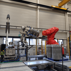 DrumBot 100 – Depalletization, automated opening and emptying of drums